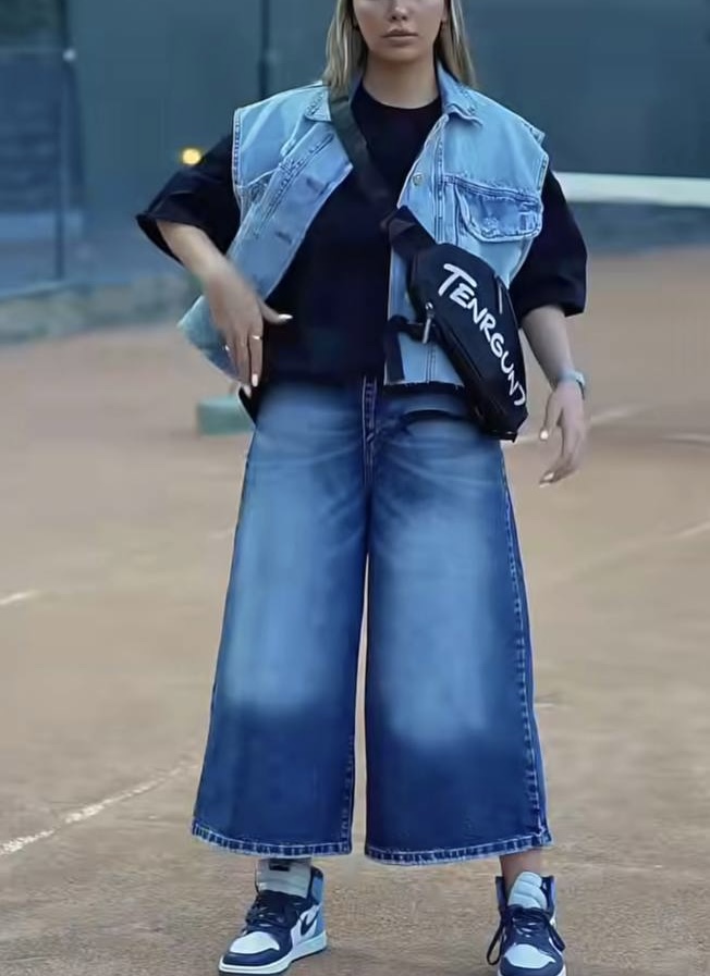 پارچه جین ضخیم وارداتی قدحدود ۵۱ عرض سینه ۶۱ اوور سایز و آزاد مناسب تا سایز ۴۴